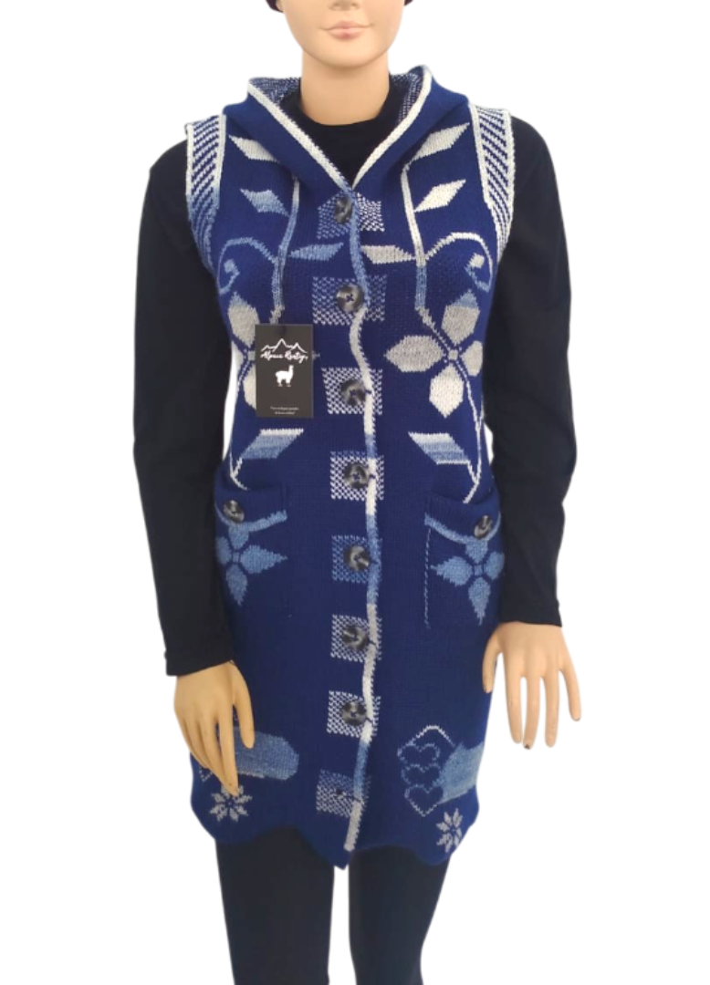 Detalles: Chaleco con capucha, 8 botones.