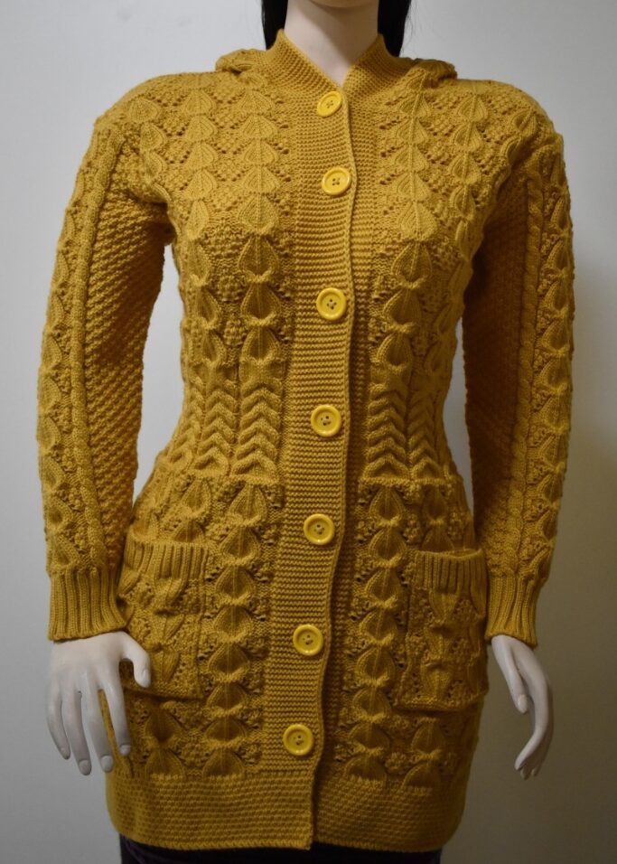 Diseño exclusivo con relieves y figuras tejidas que realzan la prenda.