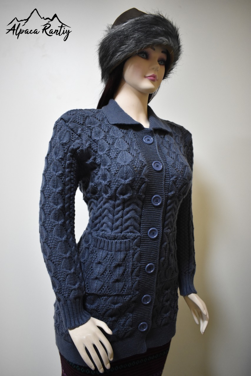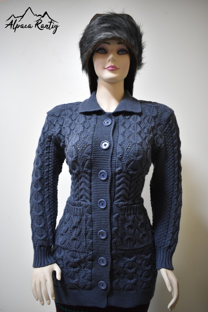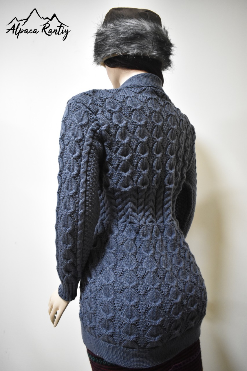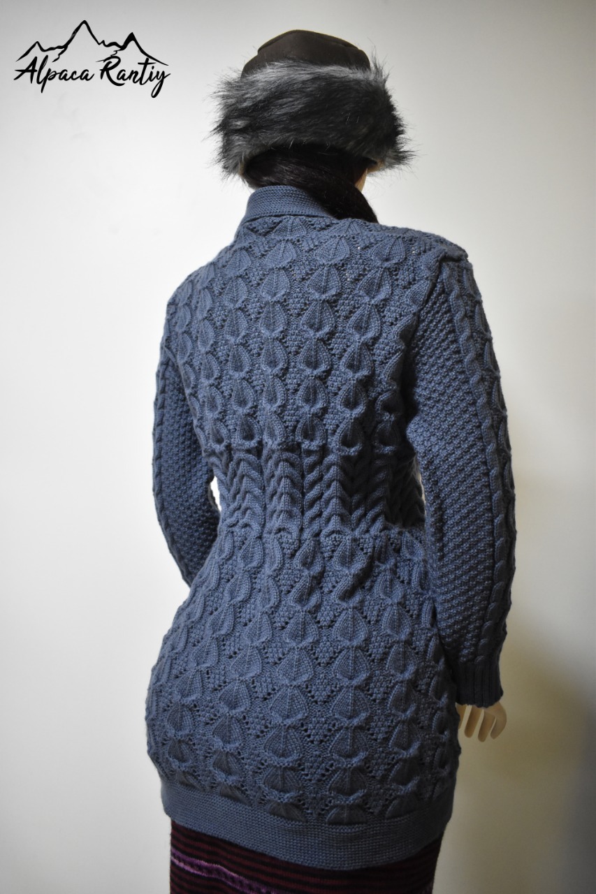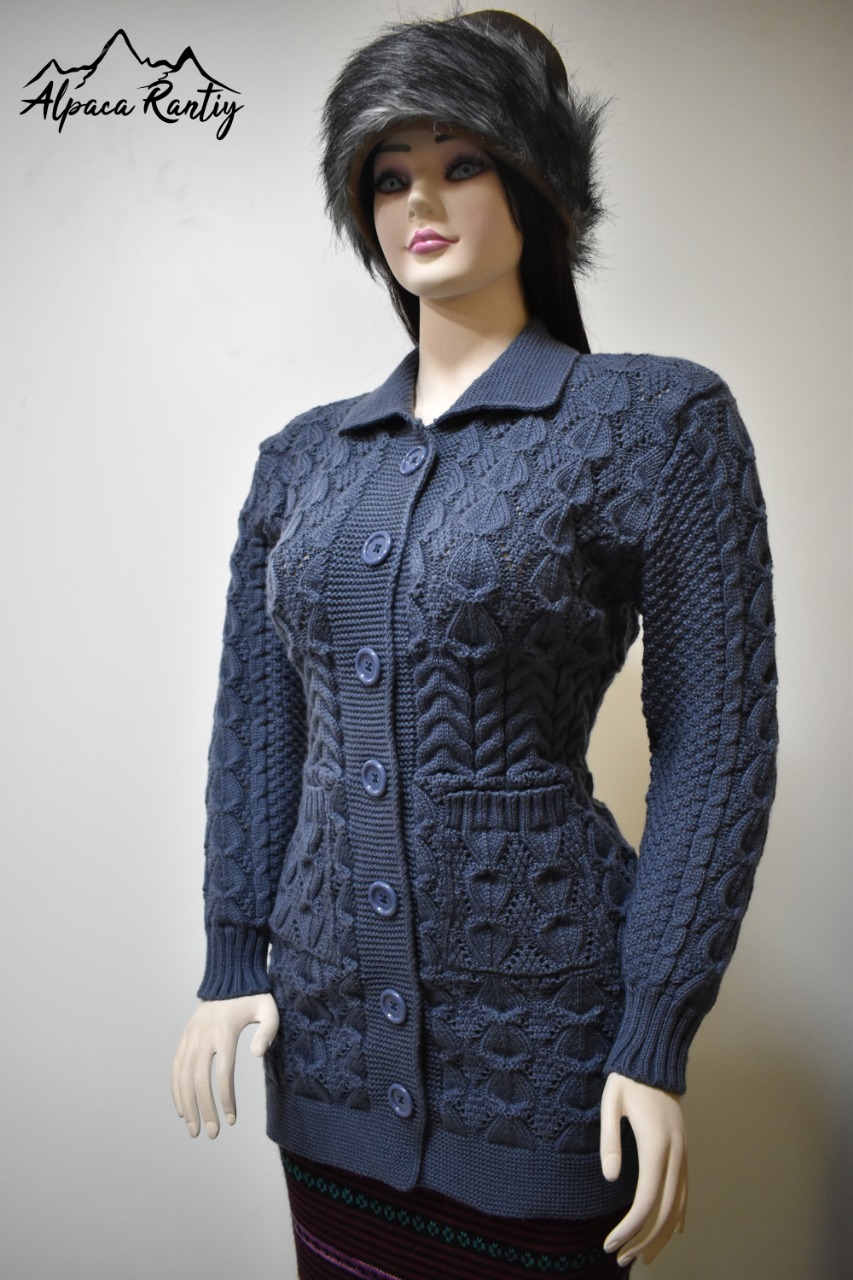 Prenda tejida con diseños exclusivos que combinan elegancia y abrigo. Esta chompa presenta un acabado con relieves y trenzas en todo el tejido, resaltando su estilo artesanal y sofisticado.