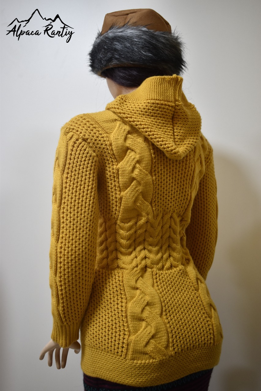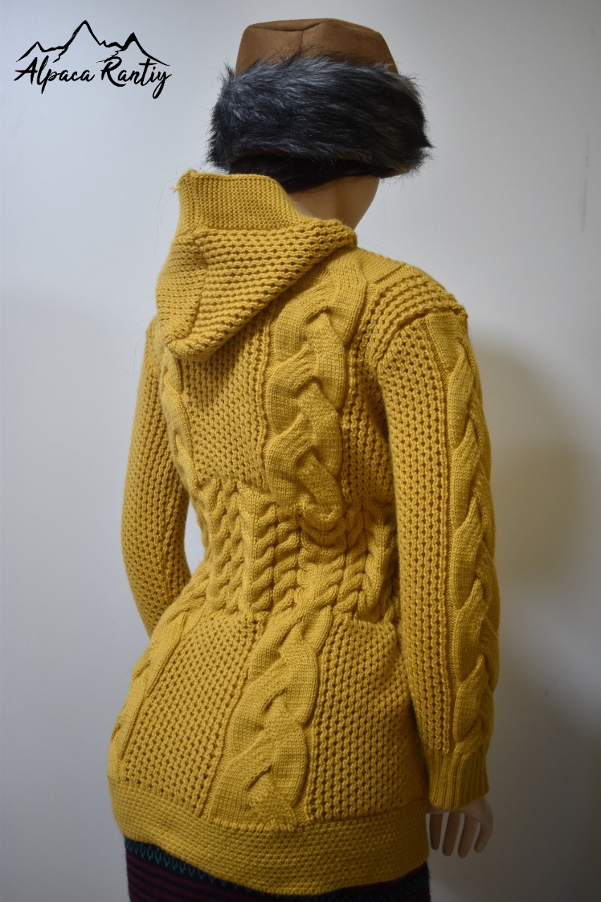 Diseño: Elegante estilo con trenzas verticales en la parte frontal y mangas, combinadas con puntos en relieve para mayor textura.