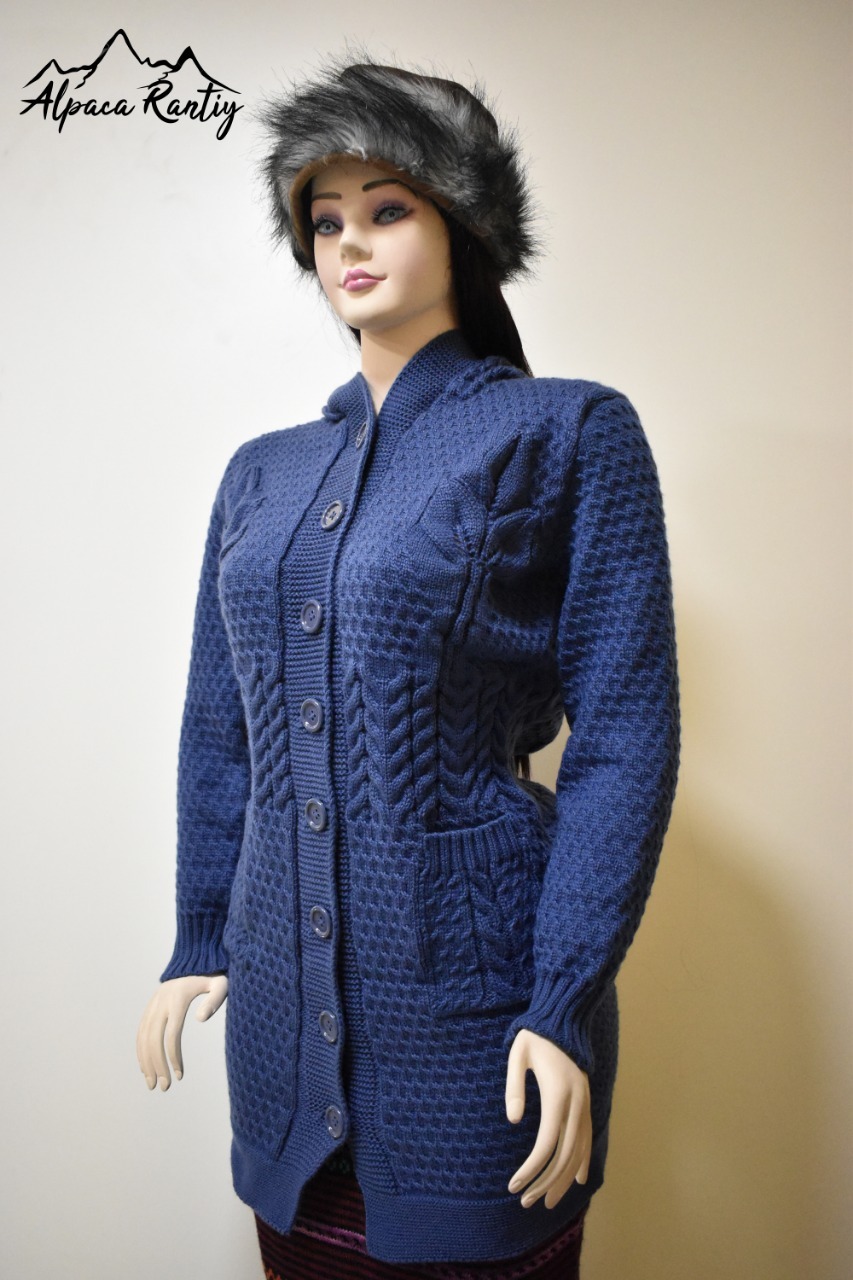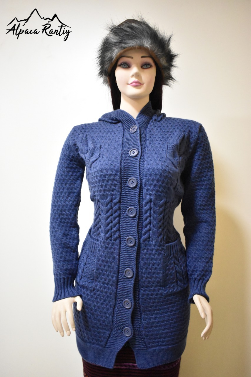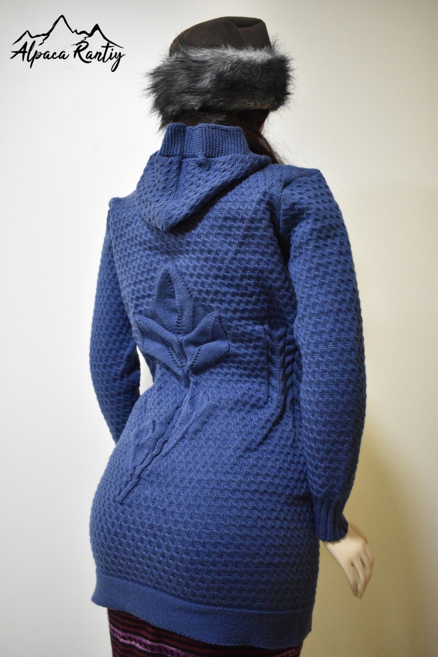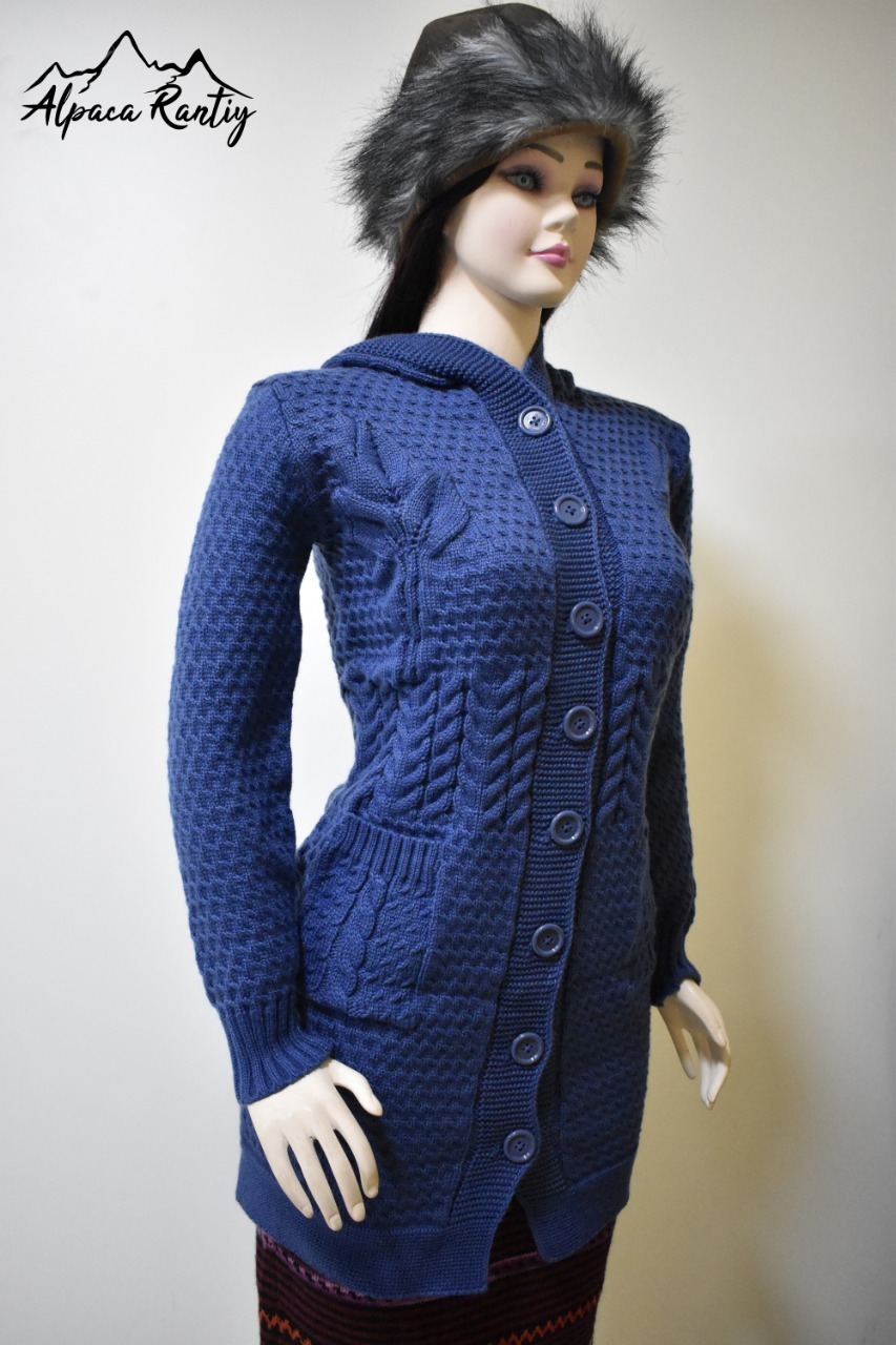 «Ilumina tu guardarropa con esta chompa larga con capucha de Alpaca Rantiykuy. Esta prenda no solo te brindará una calidez excepcional, sino que también te hará destacar con su vibrante color y su diseño tejido artesanal, ideal para agregar un toque de alegría y estilo a cualquier conjunto.»