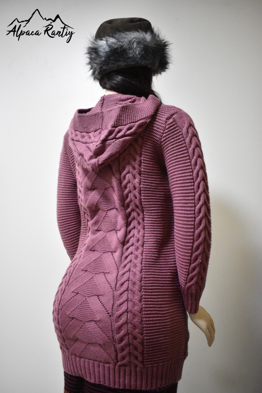 Envuelve tu estilo en la sofisticación y el calor con este magnífica chompa larga de la marca «Alpaca Rantiykuy». Diseñado para ofrecer máxima comodidad y un toque de elegancia, esta prenda es un imprescindible para enfrentar el frío con distinción.