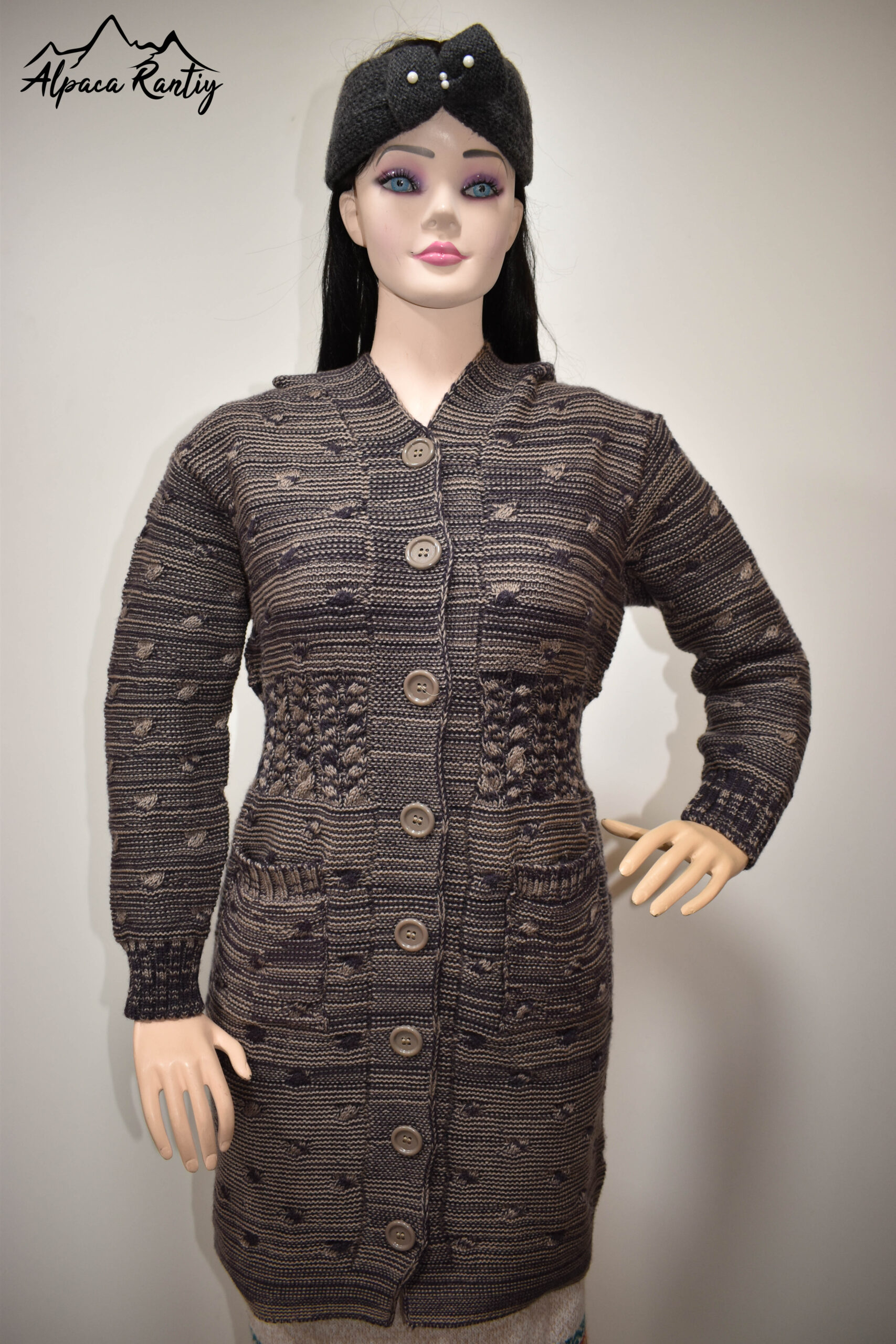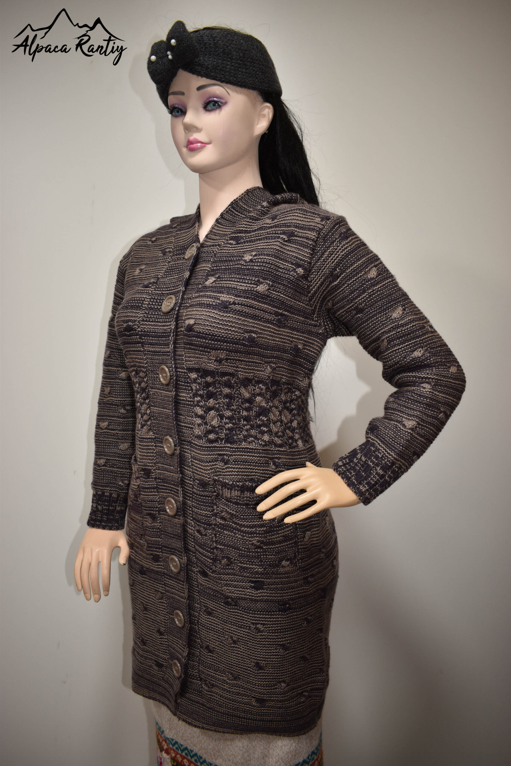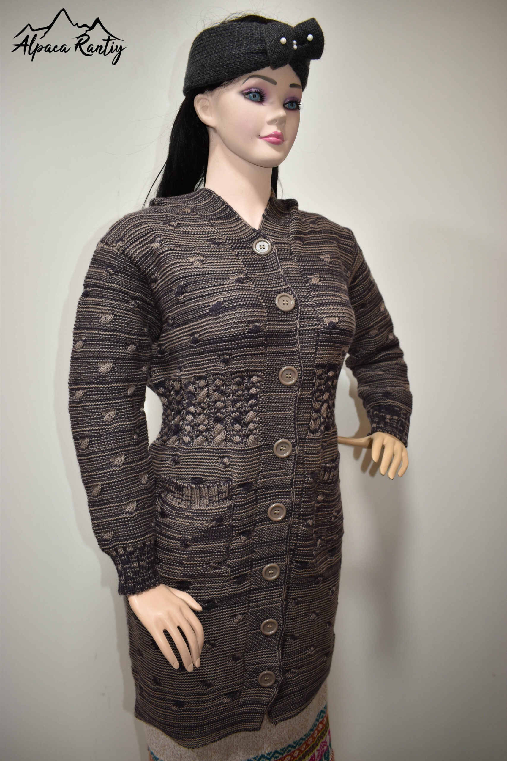 Tipo: Chompa larga tipo abrigo tejido