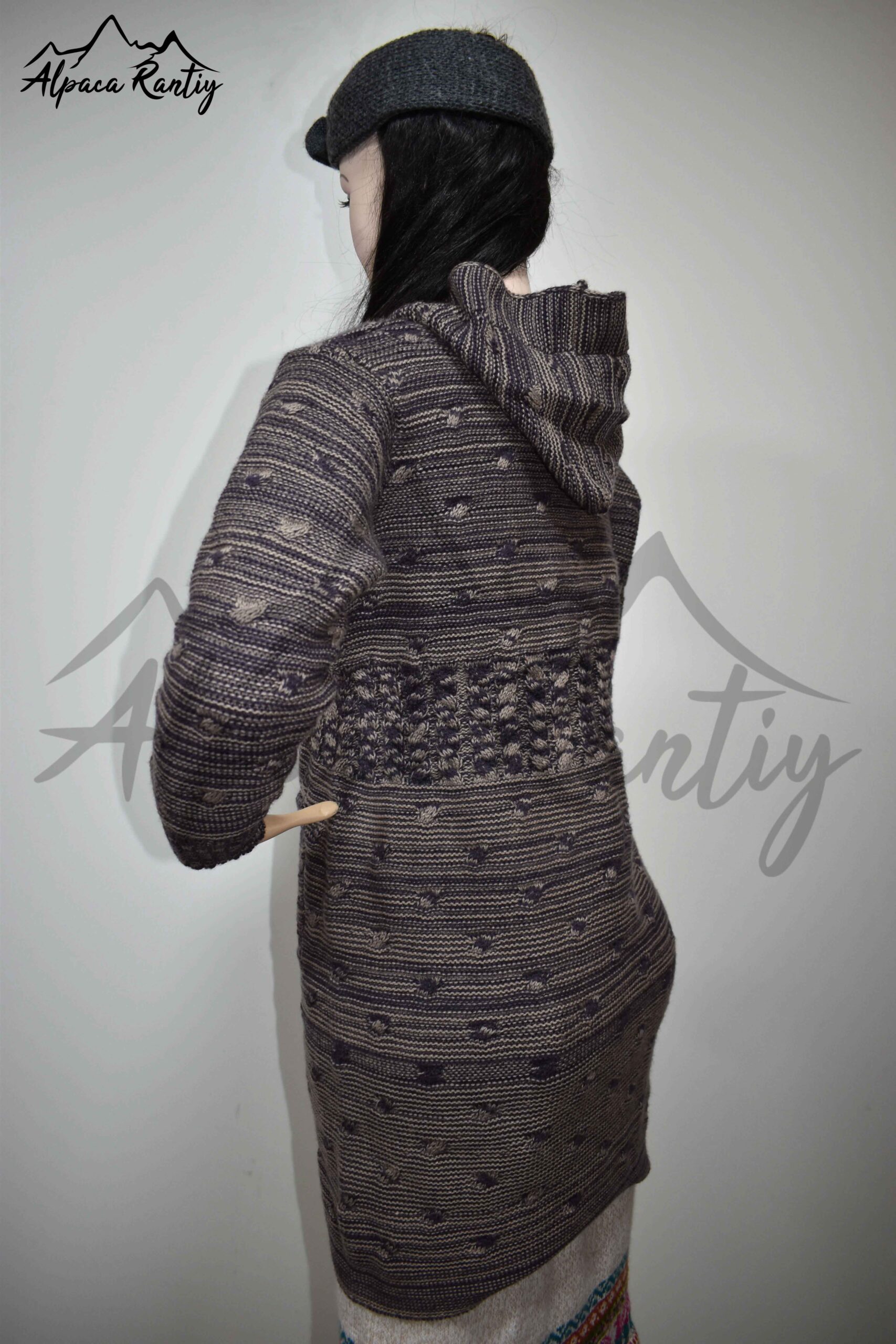 Esta es una chompa larga de mujer tejida a dos colores, ideal para abrigarse con estilo durante los días fríos. Su diseño artesanal y moderno la convierte en una prenda versátil y llamativa.