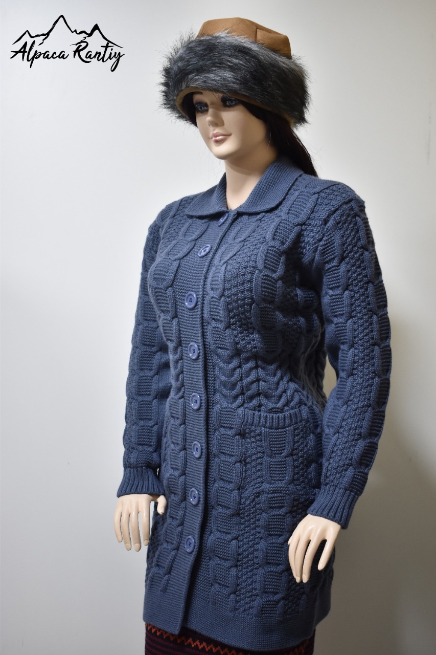 Esta chompa larga ha sido confeccionada con fibras de material y mezcla de fibras de alta calidad, lo que garantiza una textura suave, ligera y muy cálida, ideal para protegerte de las bajas temperaturas sin perder la comodidad.