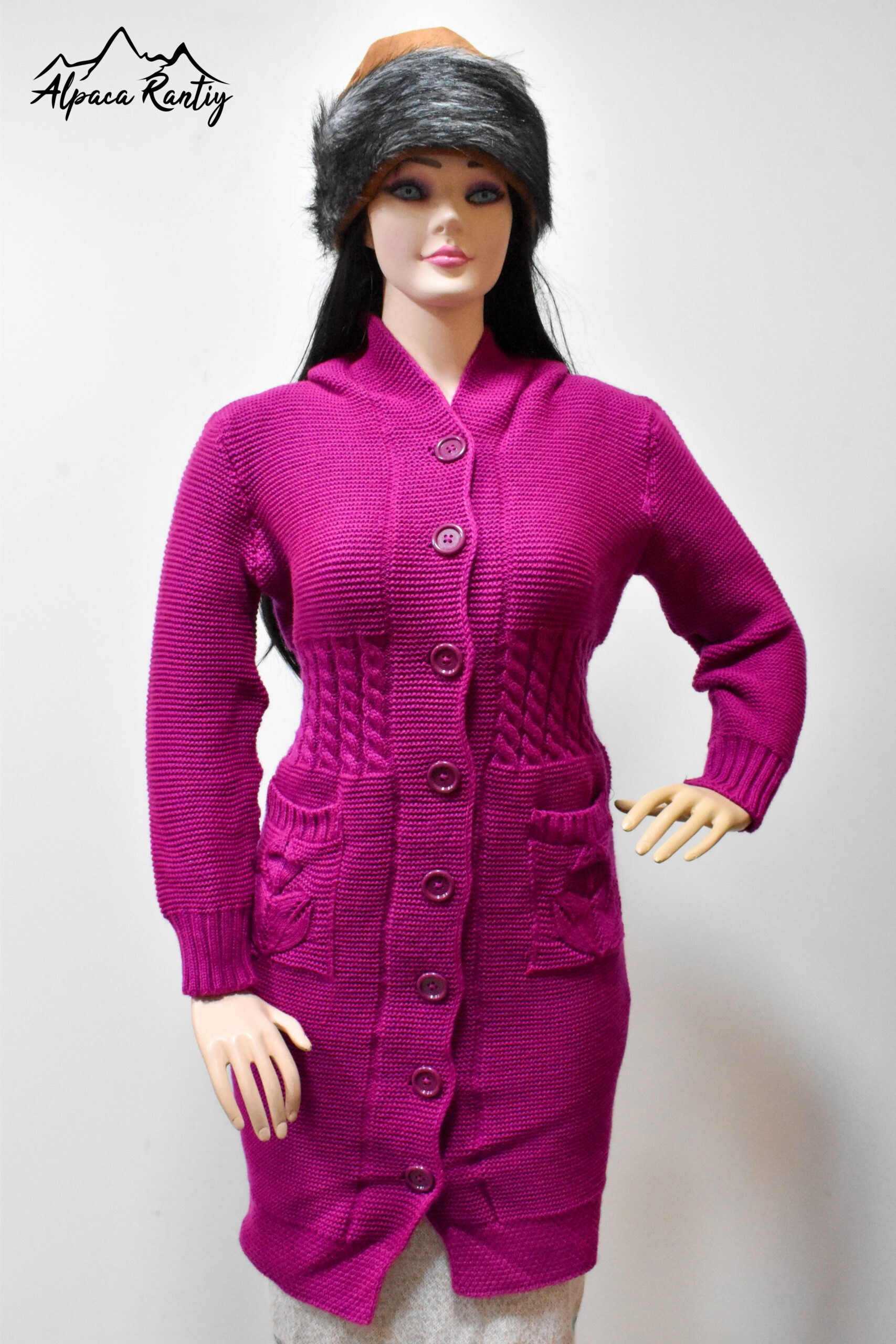 Añade un toque vibrante a tus días fríos con esta chompa larga color morado, tejida a máquina con material wayra, ideal para mantener el abrigo sin perder estilo. Su diseño combina estructura, textura y detalles artesanales, perfecta para mujeres que buscan comodidad y elegancia en una sola prenda.