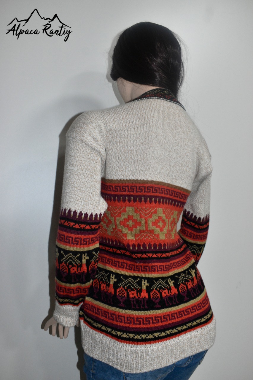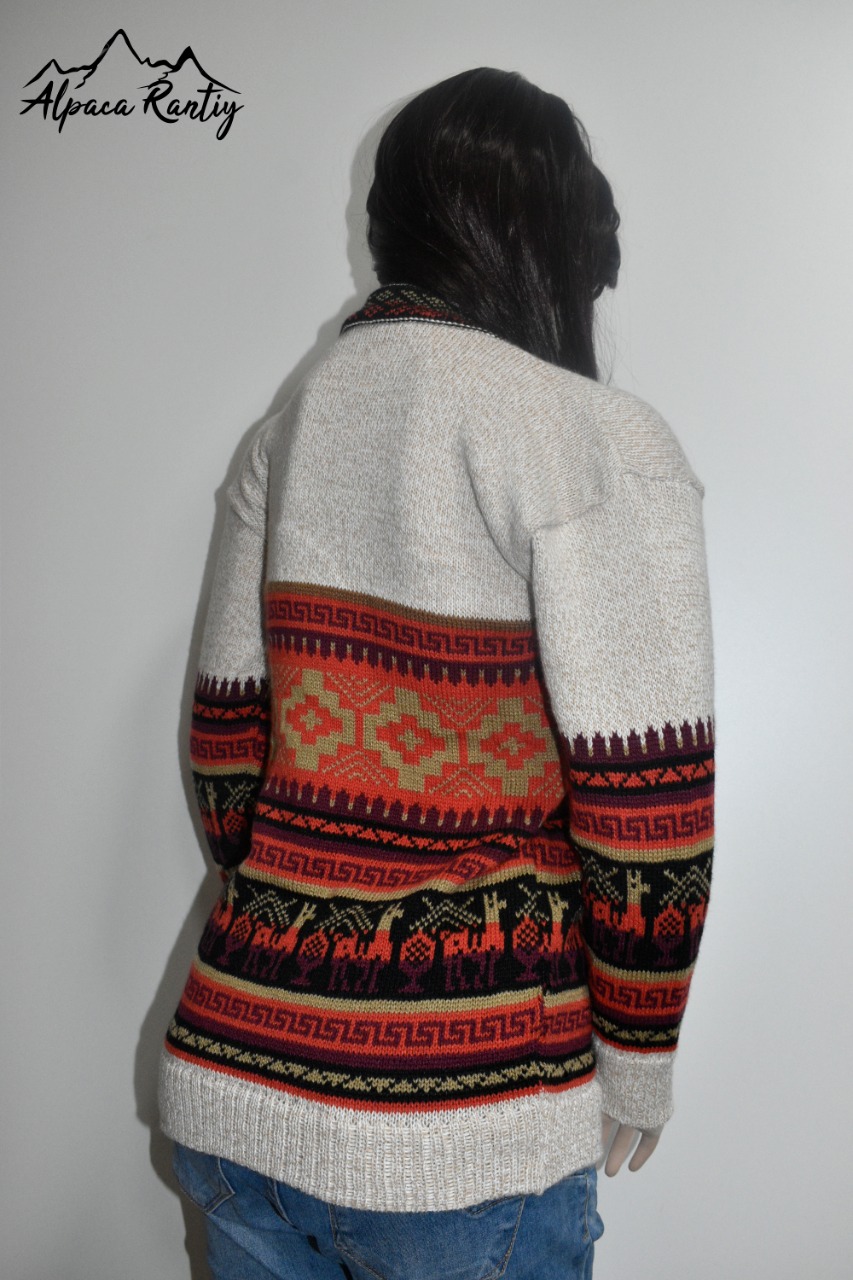 Sumérgete en la rica cultura andina y la incomparable calidez de la alpaca con esta excepcional chompa de la marca «Alpaca Rantiy». Una pieza maestra que combina el confort superior de la fibra natural con un diseño vibrante y lleno de historias, perfecta para quienes buscan autenticidad y estilo.