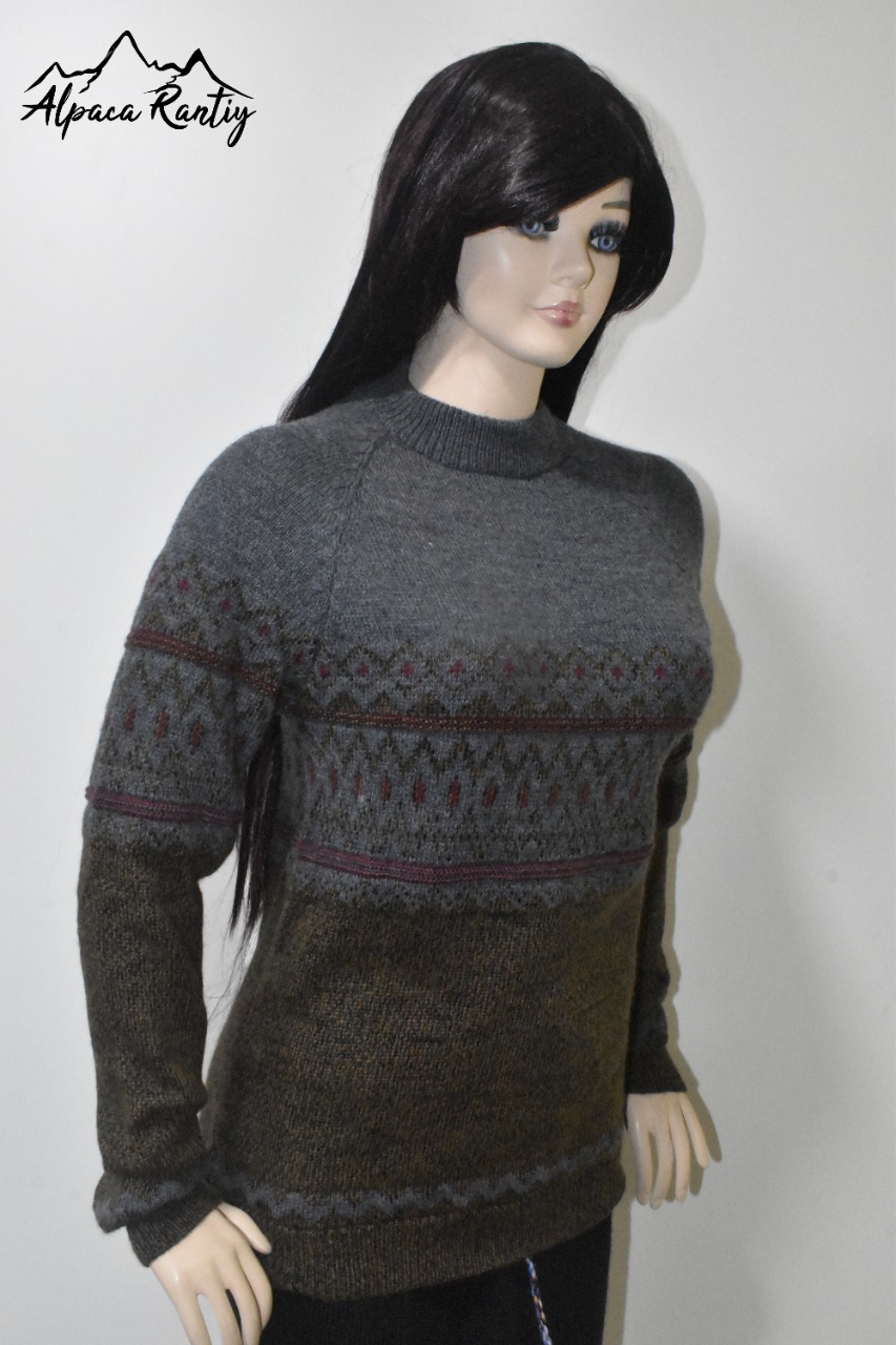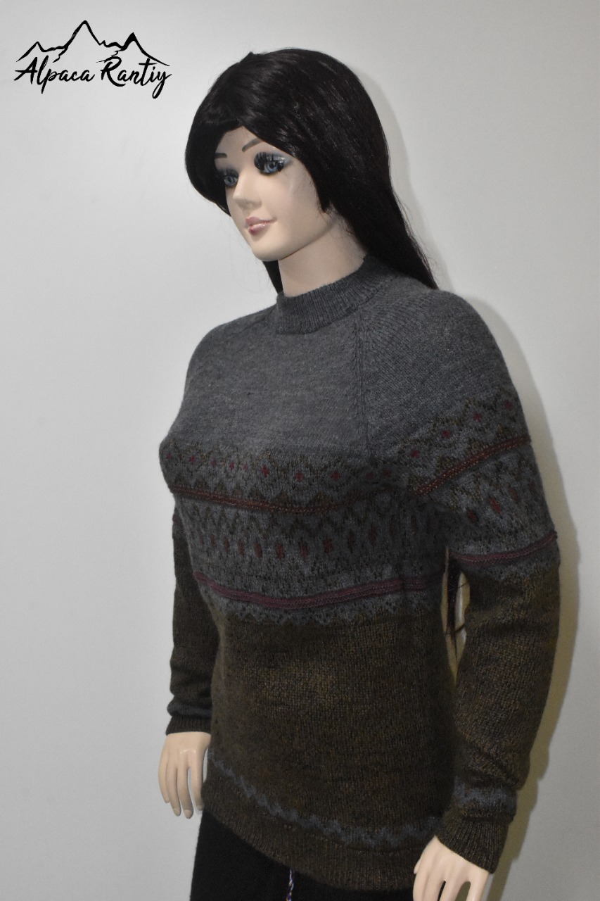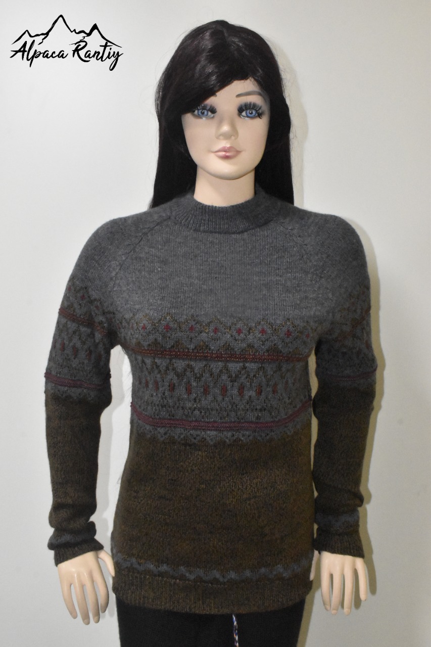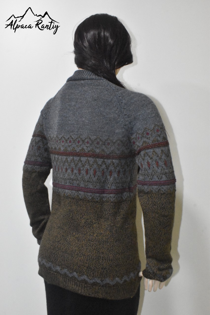 Este sofisticado suéter de la marca «Alpaca Rantiykuy» es una prenda versátil y acogedora que combina la calidad superior de la alpacril con un diseño de bloques de color y patrones inspirados en la rica tradición textil andina. Es la elección perfecta para quienes buscan confort, durabilidad y un estilo distintivo en su guardarropa de invierno.
