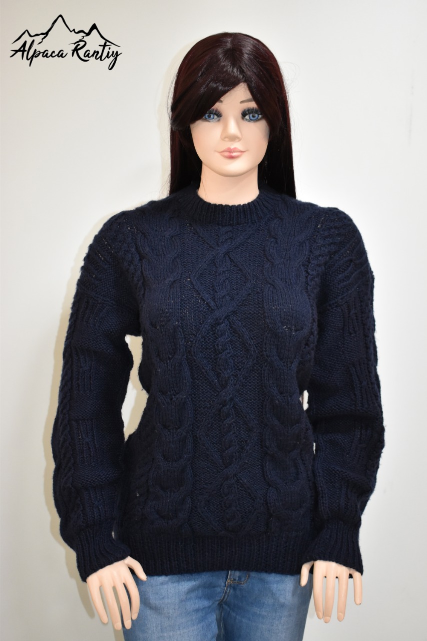 Este suéter es increíblemente suave al tacto. El Alpacril es conocida por su durabilidad, resistencia al pilling y su capacidad de regular la temperatura, manteniéndote abrigado en el frío y cómodo en ambientes menos extremos. Los puños y el cuello redondo presentan un acabado en punto elástico, asegurando un ajuste perfecto y una mayor resistencia al desgaste.