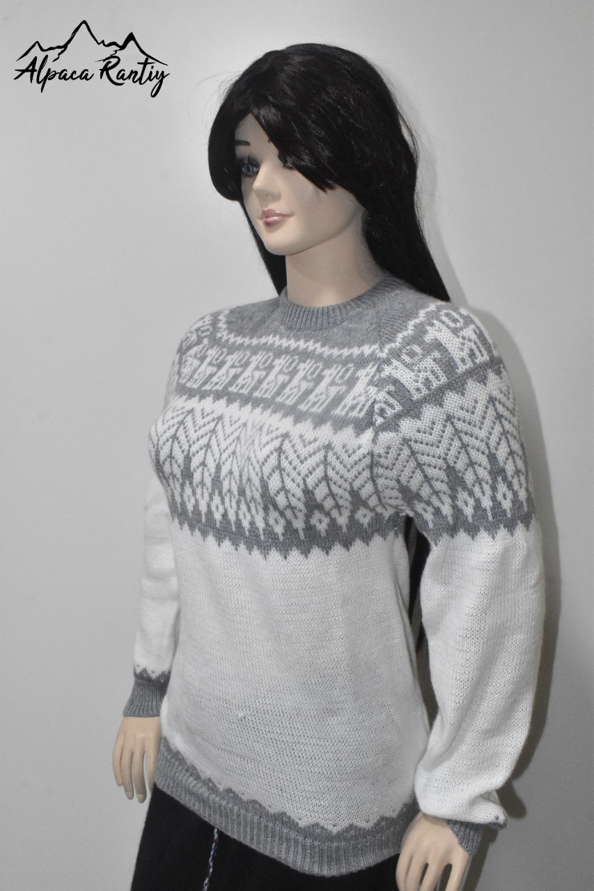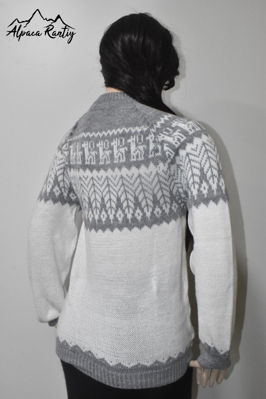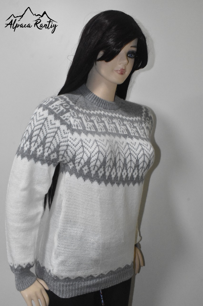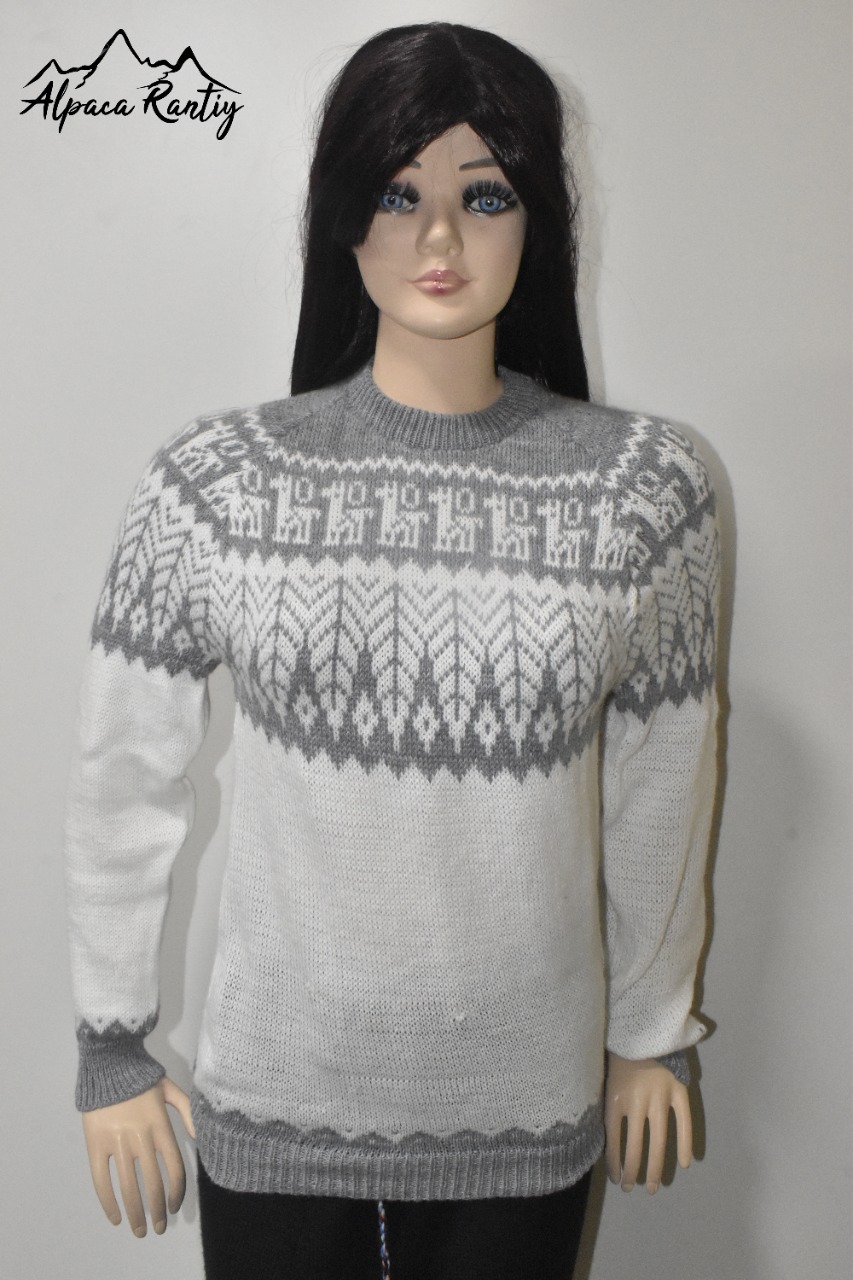 Presentamos esta sofisticada chompa de la marca «Alpaca Rantiykuy», una prenda que fusiona la excelencia de la fibra de alpacril con la riqueza cultural de los Andes. Es la elección perfecta para el hombre moderno que busca calidez, comodidad y un estilo distintivo con un toque artesanal.