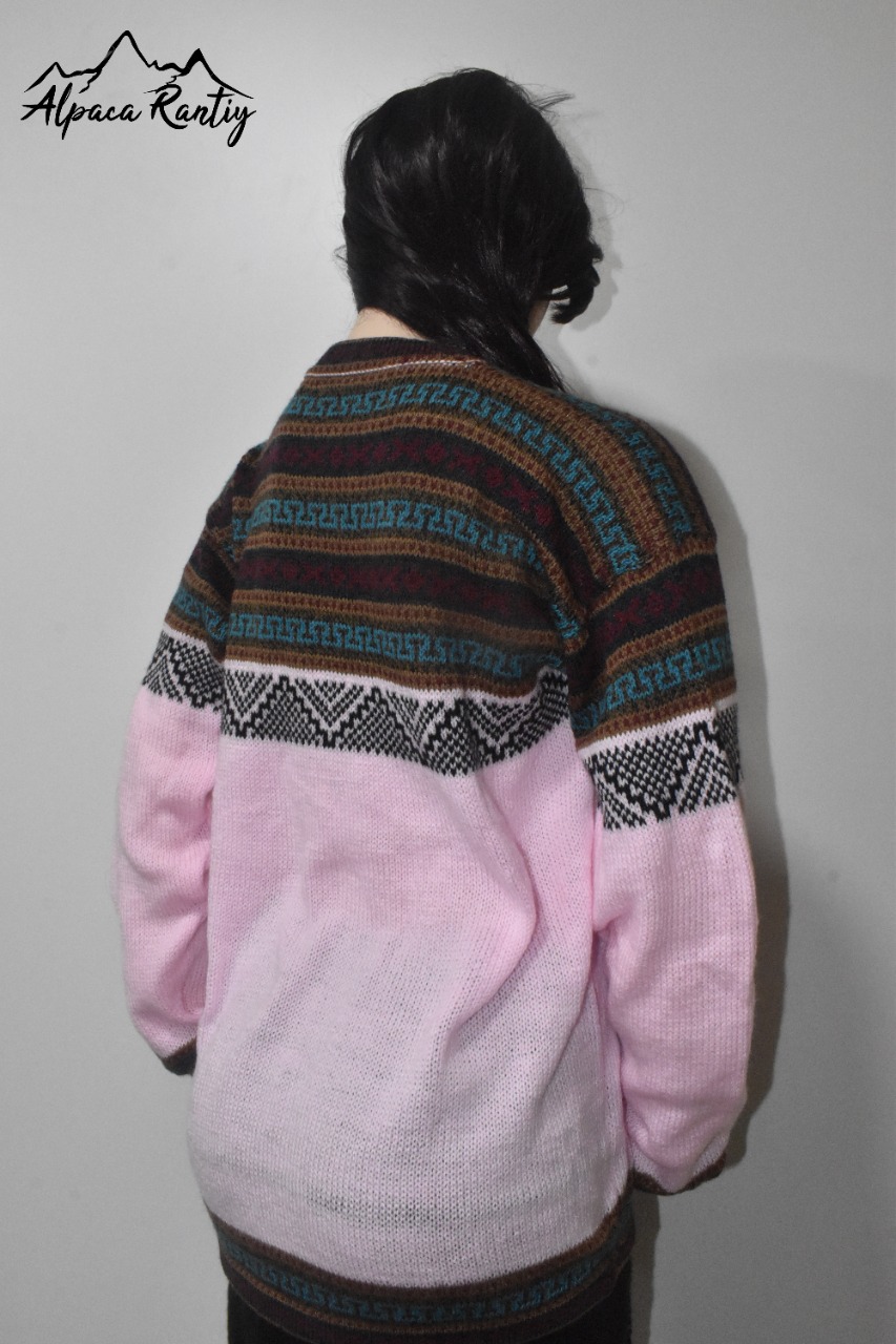 Descubre la esencia de los Andes con este magnífico suéter de alpacril de la reconocida marca «Alpaca Rantiykuy». Hecho con la suavidad y calidez superiores de la fibra de alpacril, este suéter es una pieza imprescindible para enfrentar el frío con estilo y autenticidad. Cada detalle refleja la rica herencia textil de nuestra región.